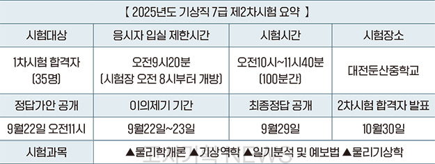 기상청은 2025년도 7급 공개경쟁채용 제2차시험의 일시 및 장소와 응시자준수사항을 공고했다.