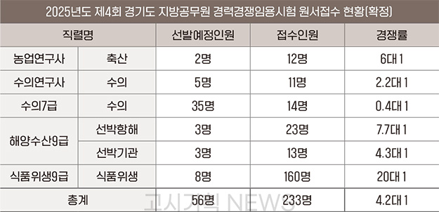 2025년도 제4회 경기도 경채(연구사, 7·9급) 필기시험이 오는 27일 실시된다.
