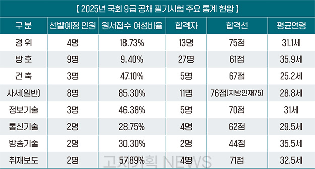 국회사무처는 2025년도 9급 공개경쟁채용시험 필기 관련 통계자료를 공고했다.