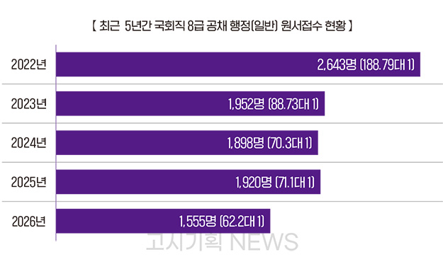 국회사무처는 '26년도 제24회 국회직 8급 공개경쟁채용시험 접수현황 집계를 마쳤다.