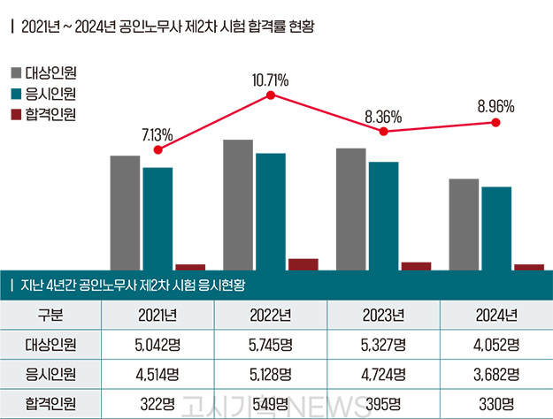 일자별 시험과목(배점, 시간)은 ▲8월30일 △노동법(150점, 150분) △인사노무관리론(100점, 100분) ▲8월31일 △행정쟁송법(100점, 100분) △경영조직론 또는 노동경제학 또는 민사소송법 중 택 1(100점, 100분)로 진행된다.